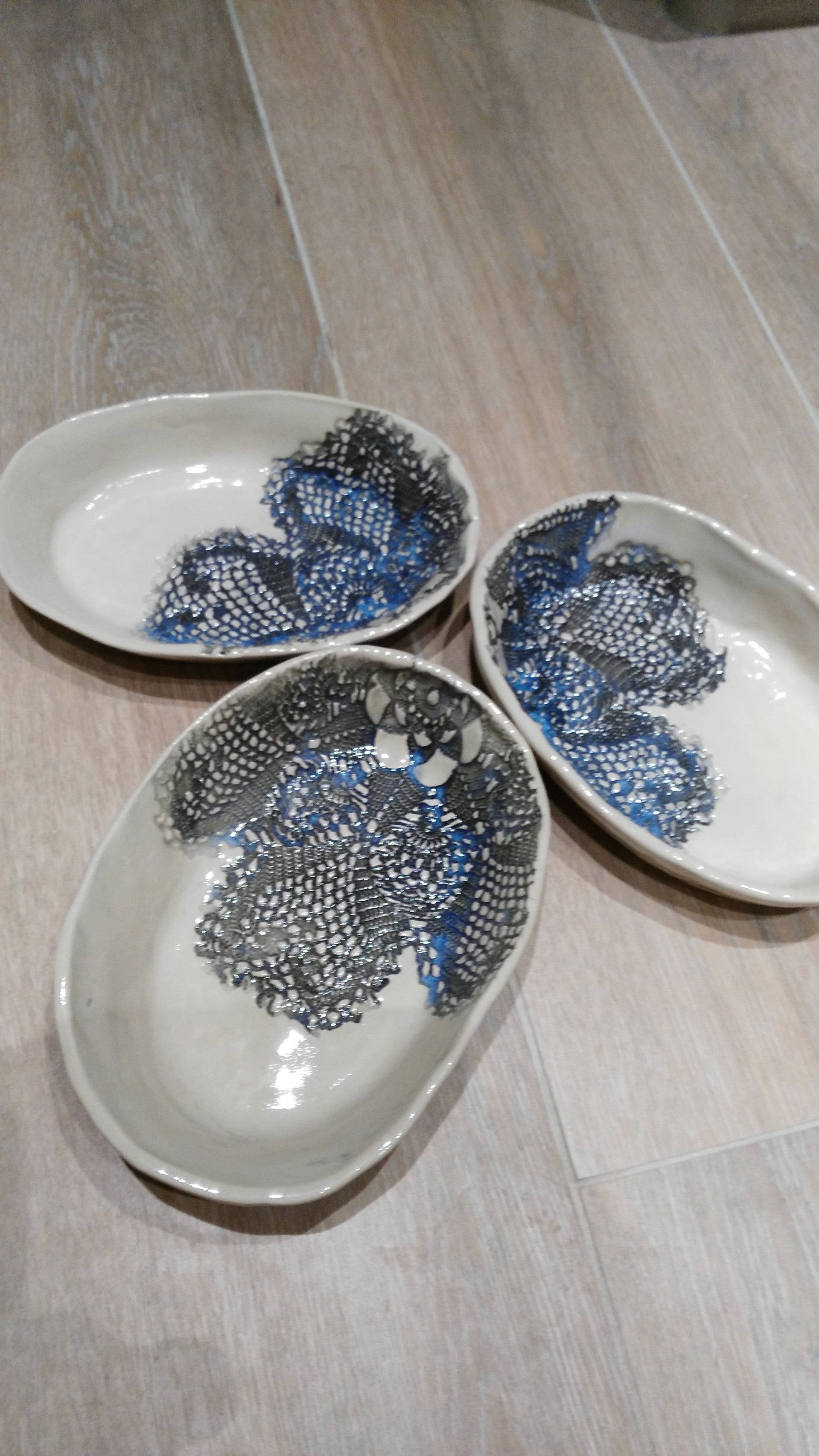 Deze set bestaat uit drie leuke tapaschalen. Zwarte onderglazuur en een transparante glazuur zorgen voor een vaatwasbestendige en voedselveiligheid afwerking. Gebakken op steengoedtemperatuur (1250 graden). De blauwe glans is een leuke toets.