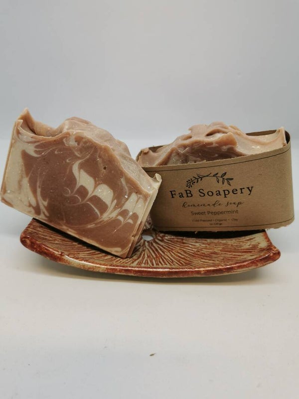 Ken je die harde snoepjes nog met rood en wit (candy cane/suikerstok)? Deze handgemaakte zeep doet me daar zo hard aan denken. Een zeep met rode klei en een heerlijke zachte geur van pepermuntjes.
