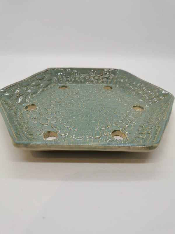 Zeepschaal zeshoek groenig blauw