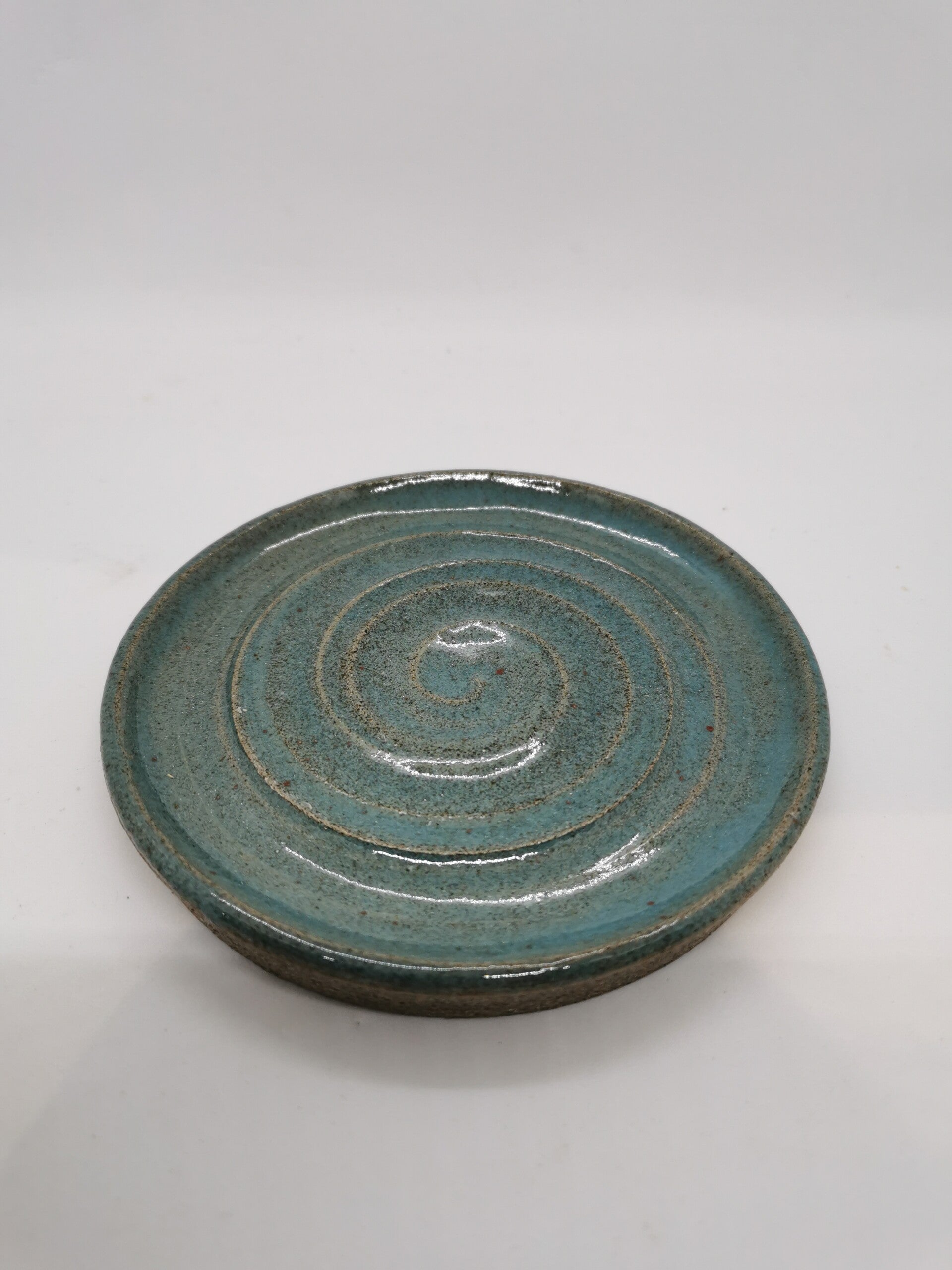 Een leuk handgedraaide zeepschaal in een speciale spikkelkleur.